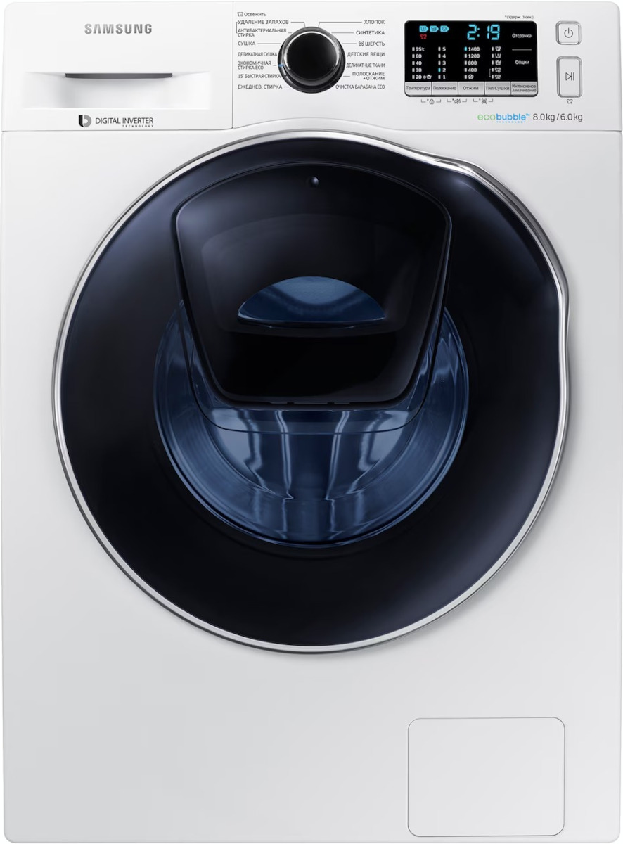 Технология Eco Bubble™ (превращает моющее средство в активную пену, позволяя ей быстрее проникать в ткань и улучшая качество стирки)