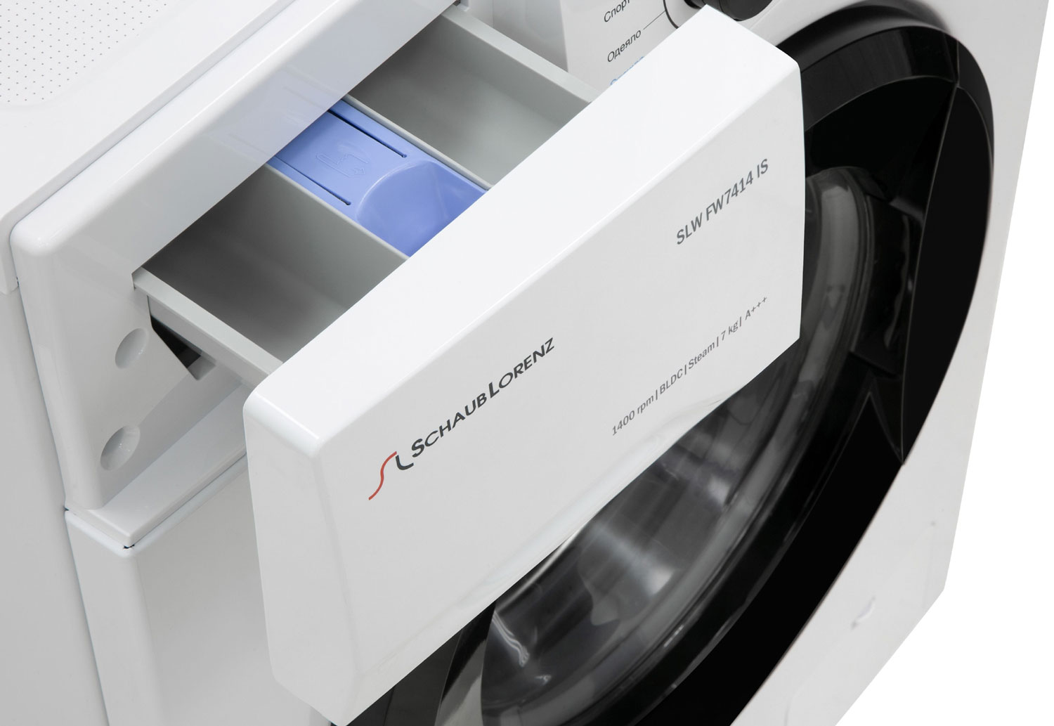 Стиральная машина Шауб Лоренц SLW FW7414 IS выпущена в стандартной конфигурации — устанавливается отдельно, поэтому рекомендуем заранее выделить для нее место в квартире. Благодаря классической фронтальной загрузке она привычна и удобна даже для тех, кто не очень разбирается в технике. За счет небольшой глубины данную модель предпочитают владельцы небольших квартир, студий. Вместительность барабана средняя, поэтому ее хватит и для одиночек, и для семей с детьми. Максимальная загрузка: 7 кг.