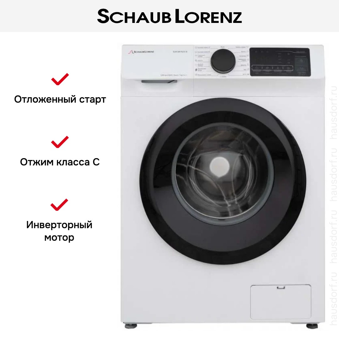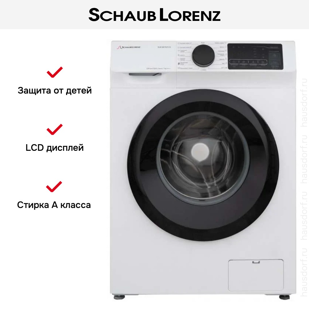Стиральная машина Шауб Лоренц SLW SW7625 IS выпущена в стандартной конфигурации — устанавливается отдельно, поэтому рекомендуем заранее выделить для нее место в квартире. Благодаря классической фронтальной загрузке она привычна и удобна даже для тех, кто не очень разбирается в технике. За счет небольшой глубины данную модель предпочитают владельцы небольших квартир, студий. Вместительность барабана средняя, поэтому ее хватит и для одиночек, и для семей с детьми. Максимальная загрузка: 7 кг.