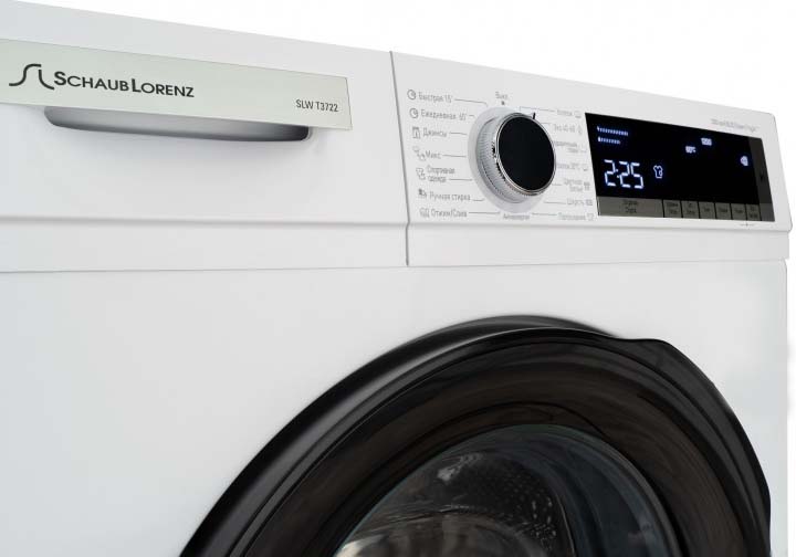 Стиральная машина Schaub Lorenz SLW-T3722 демонстрирует аккуратный минималистичный дизайн и практичную компоновку для домашнего использования. Корпус белого цвета с контрастным черным люком выглядит стильно и нейтрально, чтобы легко сочетаться с разными интерьерными решениями. Нержавеющая сталь барабана и бака придают прибору солидность, повышают срок службы и уменьшают риск появления коррозии на внутренних поверхностях.