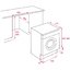 В отличие от другой встраиваемой техники, круглая дверца стиральных машин редко крепится к мебельному фасаду, она способна открываться отдельно. При размещении требуется оставлять зазор между задней стенкой машины и стеной помещения для свободного размещения шлангов. Нижняя часть стиралки закрывается цоколем, а верхняя — столешницей: крышку машины при этом иногда можно снять.