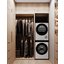 Машины с вертикальной загрузкой из-за своих конструктивных особенностей не могут встраиваться в мебель. Их высота составляет в среднем 89-90 см, и над ними необходимо оставить пространство для свободного открывания дверцы.