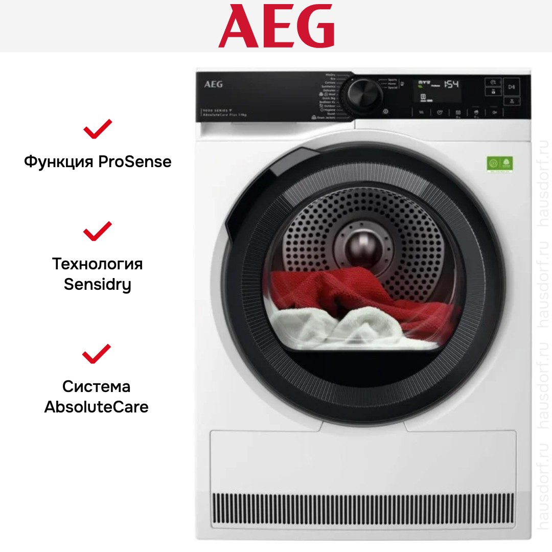 Сушильная машина AEG предназначена для домашнего использования, поэтому имеет стандартные габариты и большое разнообразие программ. Так как она устанавливается отдельно, нужно заранее найти достаточно места в помещении.