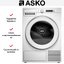 Сушильная машина Asko T309HCW выполнена в строгом классическом стиле: белоснежный корпус, горизонтальная панель управления и аккуратная белая дверца с круглым стеклом создают сдержанный, но элегантный образ для любого интерьера. Компактные габариты 85×59.5×63 см и возможность установки отдельно или в колонну обеспечивают гибкость размещения, а белая лицевая поверхность позволяет гармонично вписать прибор в существующую кухонную или бытовую зону. Панель с электронным управлением и информативным дисплеем, расположенная на фронтальной части, объединяет удобные кнопки для выбора режимов и отображение времени до окончания цикла, что упрощает контроль за процессом.