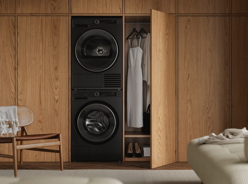 Ширину сушильной машины следует учитывать при любом варианте установки. Стандартное значение этого показателя составляет 59-60 см: такие устройства подходят для установки в колонну со стиральными или бок-о-бок с ними, а также для встраивания под столешницу или в кухонную тумбу. Они являются наиболее востребованными благодаря достаточно большому весу загрузки. Наименьшая ширина сушилок составляет 55-56 см, а максимальное значение этого параметра достигает 70 см. Самой большой шириной отличаются модели для профессионального использования, рассчитанные на увеличенный вес загрузки.
