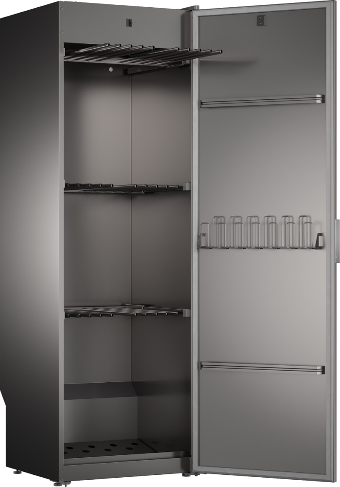 Воздух снаружи поступает в камеру, проходя через нагреватель, обволакивает одежду, вытягивает влагу — и уже влажный воздух выводится через специальный шланг.