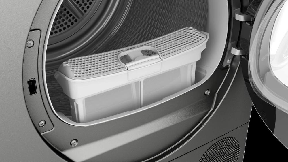 Самоочистка конденсатора — полезная функция, присутствующая в сушильных машинах от ведущих производителей бытовой техники, например, Bosch и Siemens, и облегчающая уход за прибором. Конденсатором оснащаются устройства с конденсационной сушкой или сушкой с тепловым насосом . Для очистки требуется только выбрать соответствующую программу и запустить ее: ворсинки и прочий мусор будут удалены автоматически. В некоторых случаях очистка производится без участия человека после каждого рабочего цикла: чтобы промыть конденсатор, используется влага, полученная в процессе сушки.