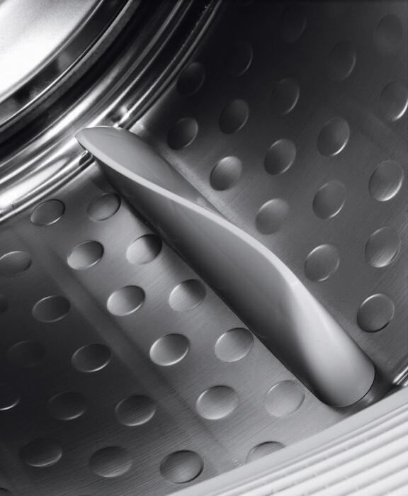 Тип сушки белья в данной модели — конденсационная с тепловым насосом. Это самый распространенный вариант, так как его просто реализовать и в работе он надежен, безопасен и удобен.