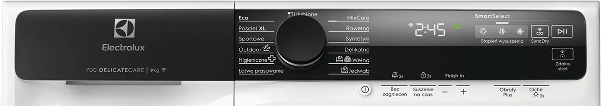Электронное управление удобно и понятно для людей разного поколения. Контролировать процесс можно с помощью дисплея, на который выводится основная информация. В вашем распоряжении индикаторы: хода программы/этапа сушки/времени выполнения цикла, времени до окончания программы, заполнения емкости для конденсата/необходимости опорожнения резервуара, продолжительности фазы «антисминание», фильтр/проблема со сливом. Вы можете использовать таймер, чтобы отложить запуск на подходящее время. Когда машинка прекратит работу, вы услышите специальный сигнал.