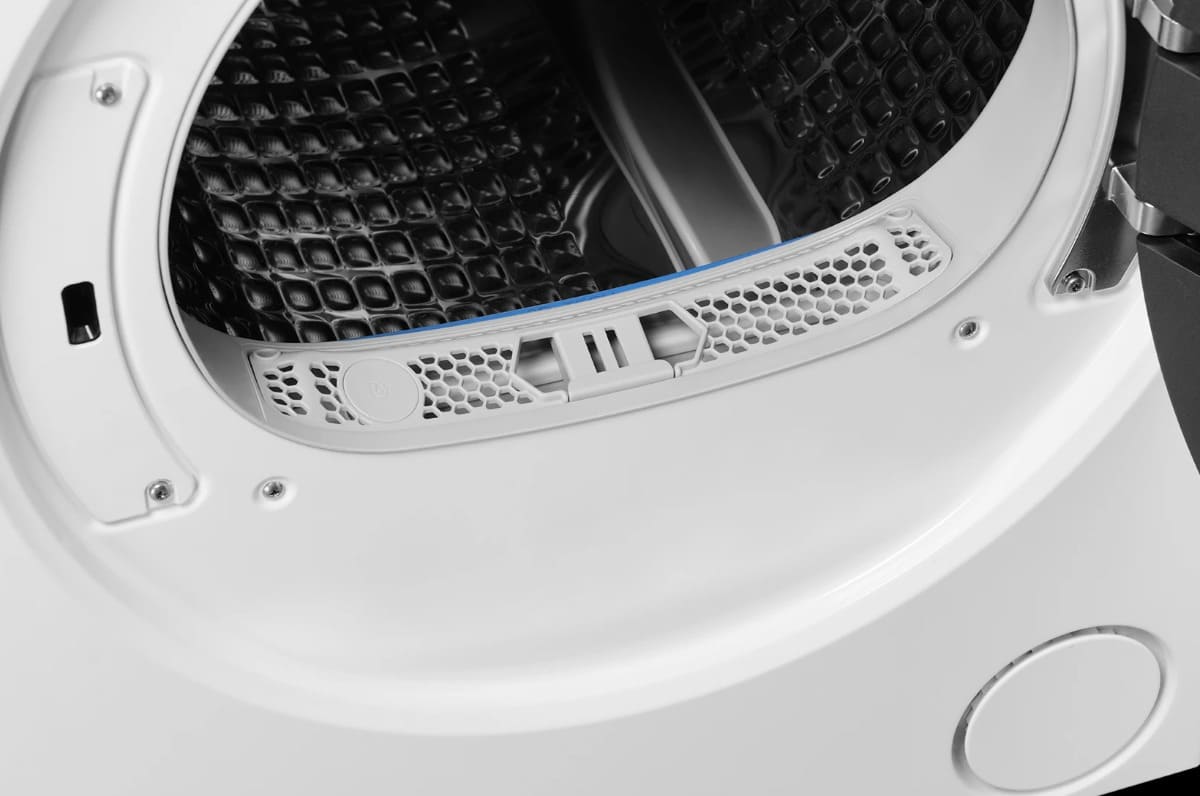 Стенки барабана покрыты «сотами» — небольшими выемками, благодаря которым образуется воздушная прослойка. Она амортизирует белье, увеличивает скорость сушки, предохраняет от складок.