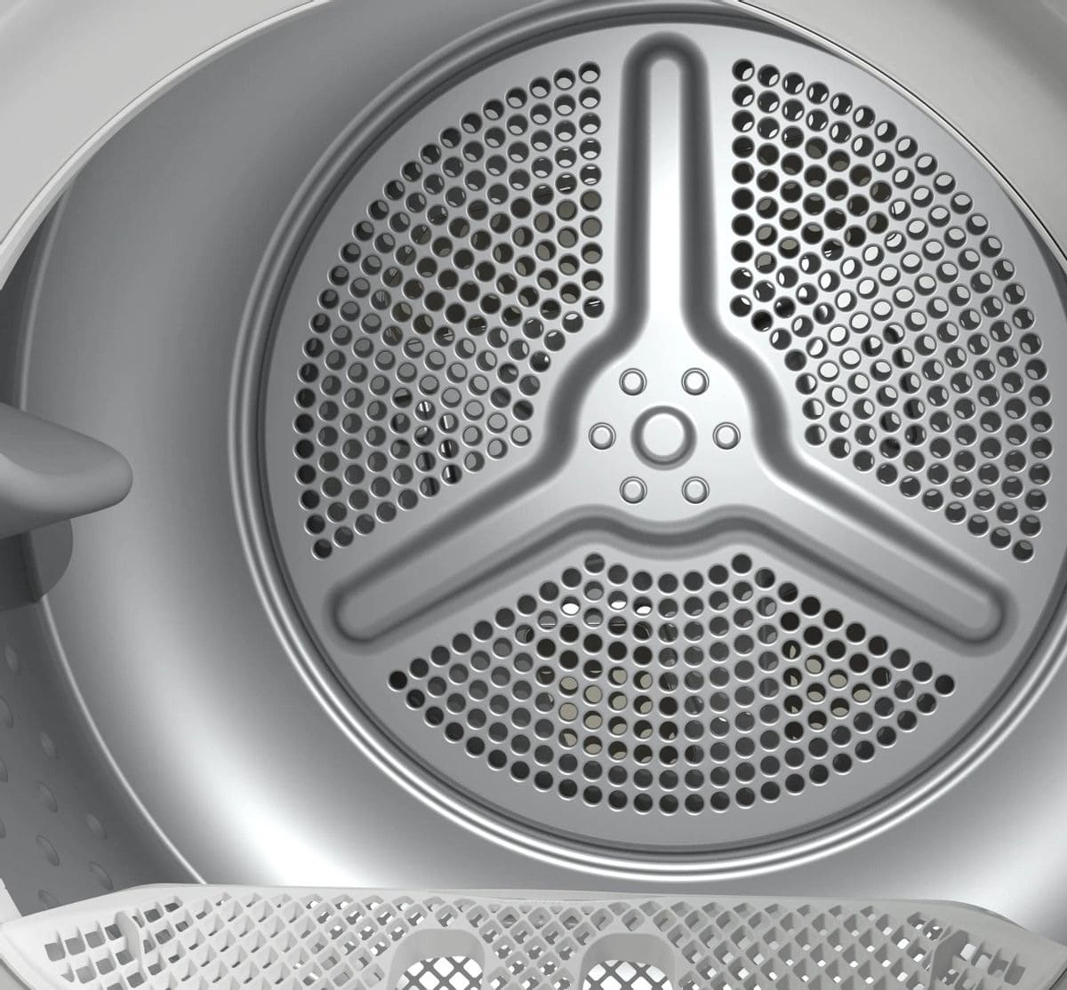 Барабан вращается попеременно в разные стороны, чтобы белье не сбивалось в ком и эффективно просушивалось со всех стороны.