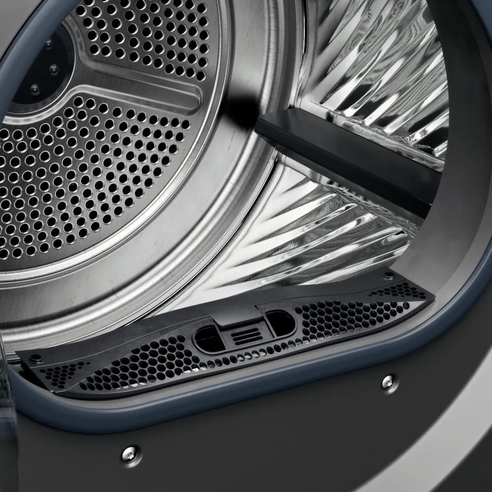 Тип сушки белья в данной модели — тепловой насос. Благодаря этому воздух поступает в барабан уже теплым, что ускоряет работу. Специальный компрессор Heat Pump помогает вам экономить электроэнергию.