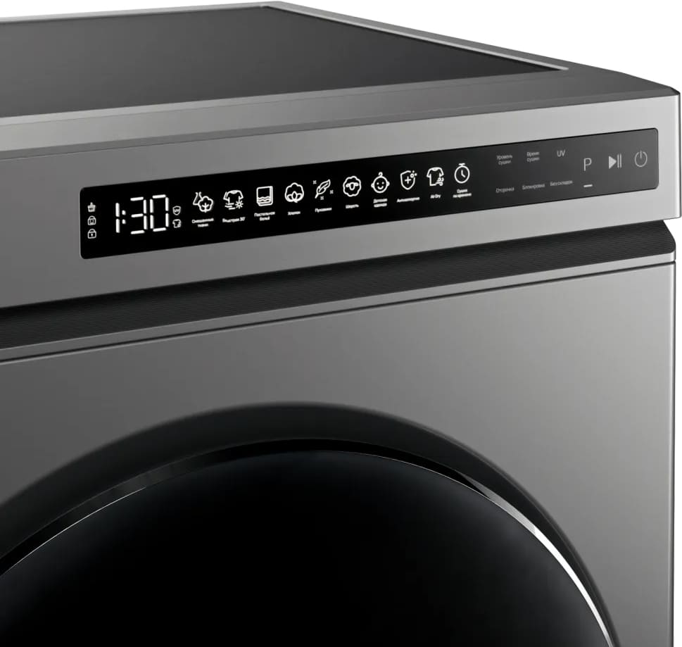 Элементы на панели управления сушильной машины служат для выбора программы сушки, для регулировки параметров работы, для задания дополнительных опций. Большинство сушильных маши оборудовано поворотными переключателями: с их помощью можно легко выбирать программу сушки — по остаточной влажности, по типу ткани, по виду изделий, по времени. Кнопки предназначаются для добавления к программе дополнительных опций: они могут быть как обычными, так сенсорными — в последнем случае все варианты выбора отображаются на дисплее, и возможности управления становятся более удобными и гибкими.
