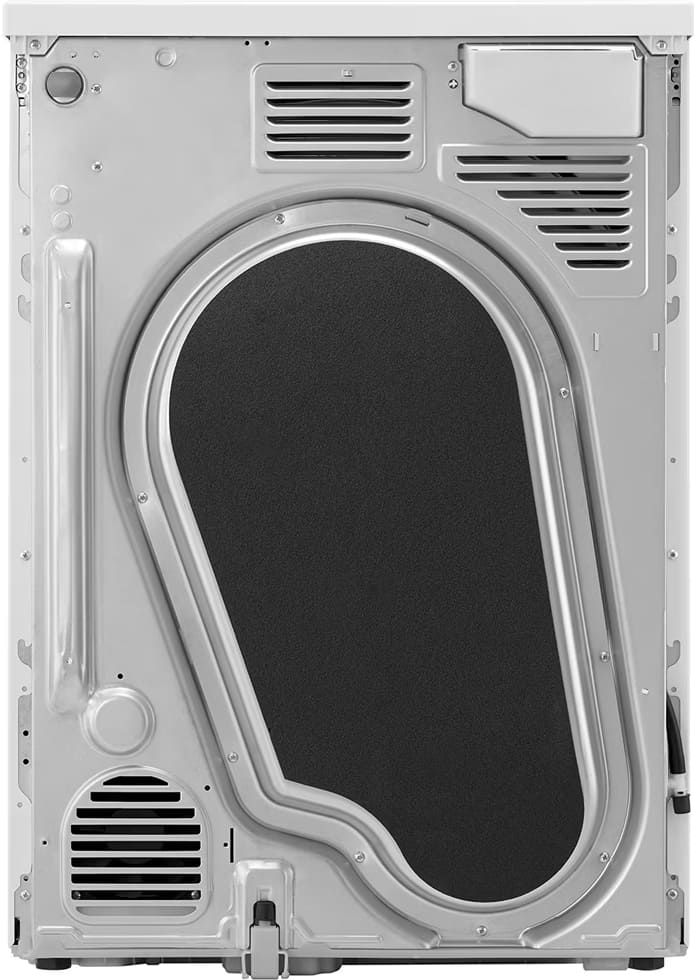 В барабан единовременно можно загрузить 9 кг. Его реверсивное вращение предотвращает сбивание вещей в ком и образование дисбаланса. Подсветка — не только красивая, но и функциональная деталь, так как дает хороший обзор, как проходит сушка. Цвет корпуса — белый. Конструктивные решения, которые выделяют эту модель: регулируемые ножки.