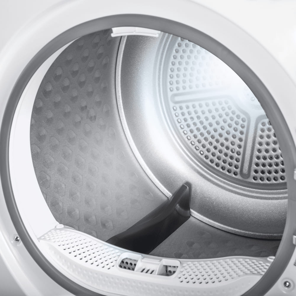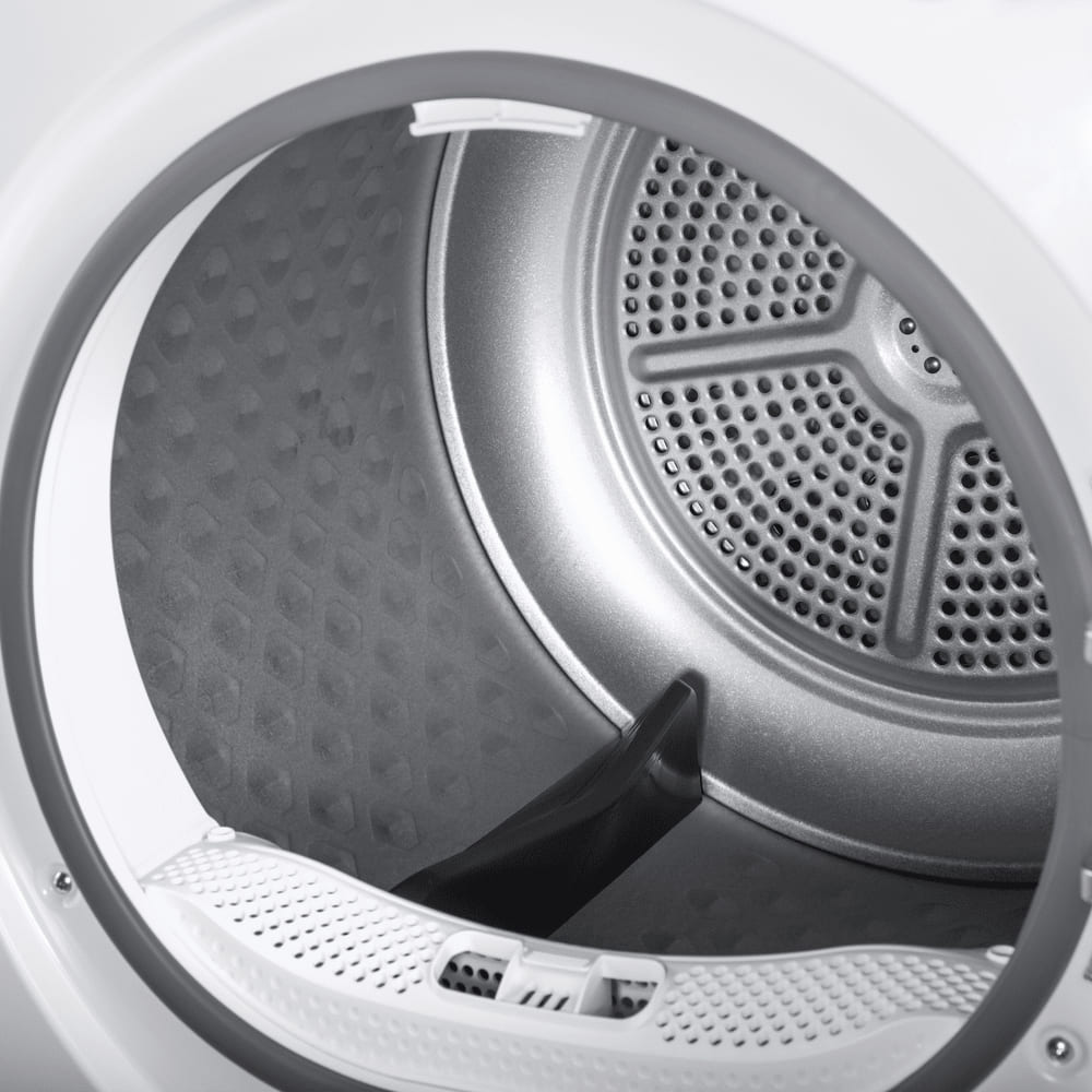 Тип сушки белья в данной модели — тепловой насос. Благодаря этому воздух поступает в барабан уже теплым, что ускоряет работу. Специальный компрессор Heat Pump помогает вам экономить электроэнергию.