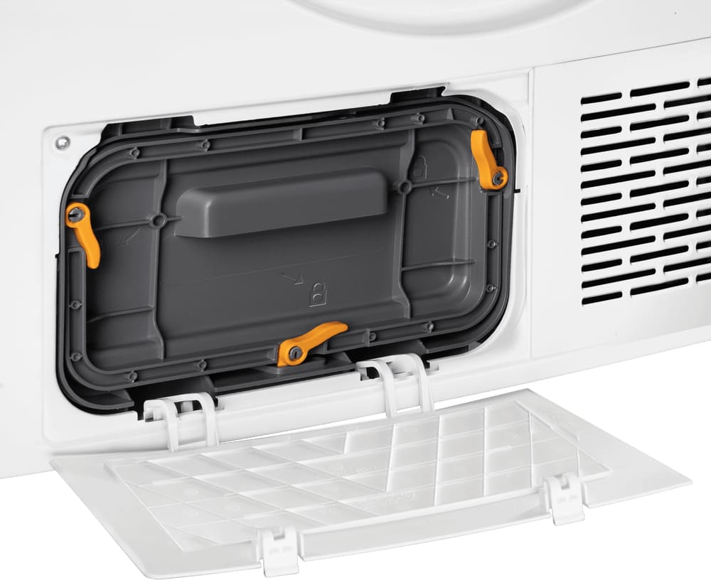 Сушильные машины конденсационного типа, как и устройства с тепловым насосом, не требуют присоединения к системе вентиляции и подключаются только к электросети. Конденсат, который удаляется из загруженного белья, стекает в специальный контейнер. Он расположен так, чтобы его извлечение было максимально удобным — например, в верхней части корпуса, там, где у стиральных машин находится лоток для порошка. Опустошать этот контейнер необходимо вручную — как правило, после завершения каждого цикла работы. О необходимости слива конденсата предупреждает специальный индикатор на панели управления.
