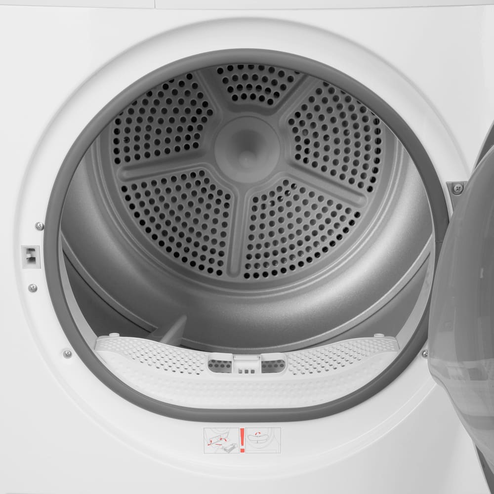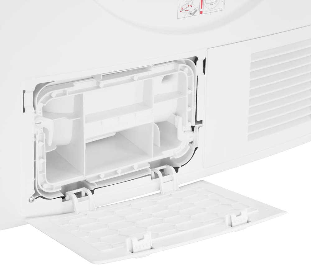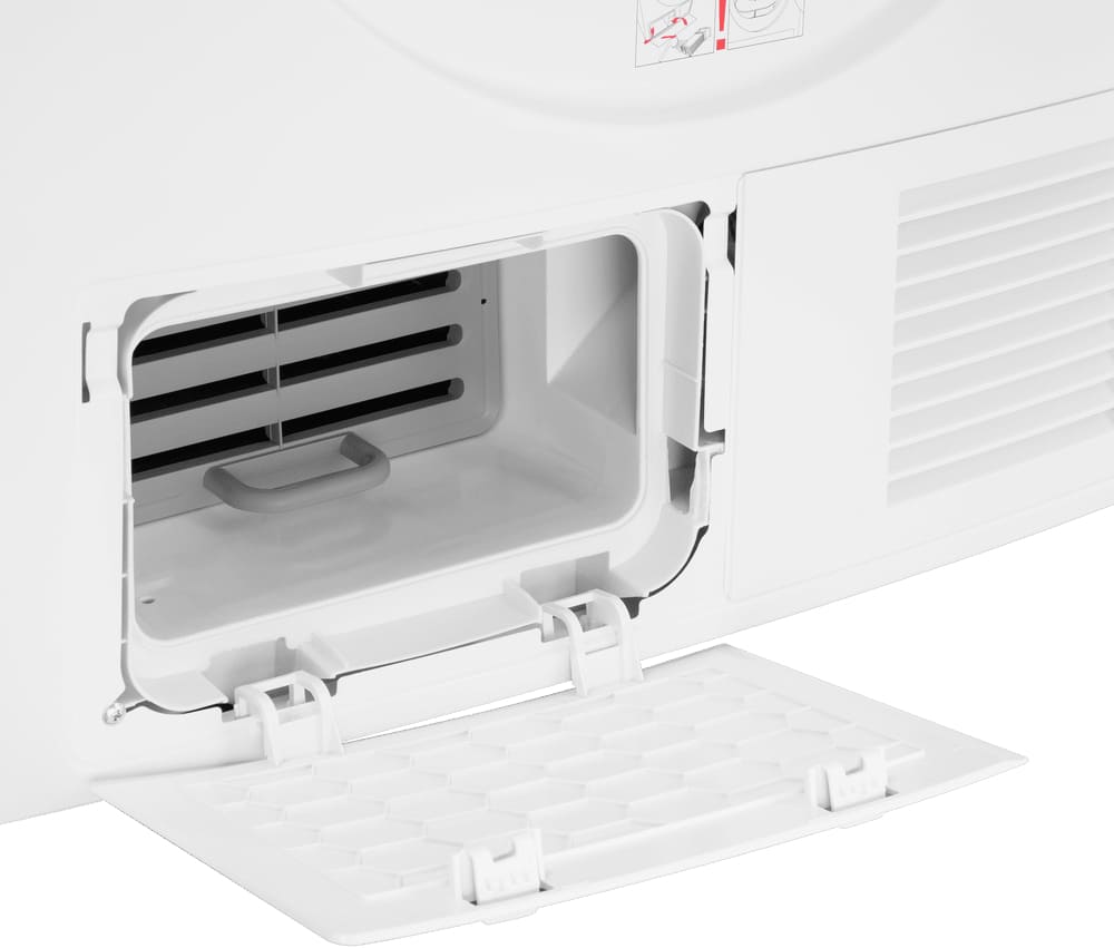 Сушильные машины конденсационного типа, как и устройства с тепловым насосом, не требуют присоединения к системе вентиляции и подключаются только к электросети. Конденсат, который удаляется из загруженного белья, стекает в специальный контейнер. Он расположен так, чтобы его извлечение было максимально удобным — например, в верхней части корпуса, там, где у стиральных машин находится лоток для порошка. Опустошать этот контейнер необходимо вручную — как правило, после завершения каждого цикла работы. О необходимости слива конденсата предупреждает специальный индикатор на панели управления.