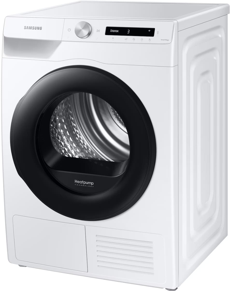 Тип сушки белья в данной модели — тепловой насос. Благодаря этому воздух поступает в барабан уже теплым, что ускоряет работу. Специальный компрессор Heat Pump помогает вам экономить электроэнергию.