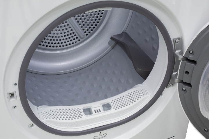 Сушильные машины конденсационного типа, как и устройства с тепловым насосом, не требуют присоединения к системе вентиляции и подключаются только к электросети. Конденсат, который удаляется из загруженного белья, стекает в специальный контейнер. Он расположен так, чтобы его извлечение было максимально удобным — например, в верхней части корпуса, там, где у стиральных машин находится лоток для порошка. Опустошать этот контейнер необходимо вручную — как правило, после завершения каждого цикла работы. О необходимости слива конденсата предупреждает специальный индикатор на панели управления.