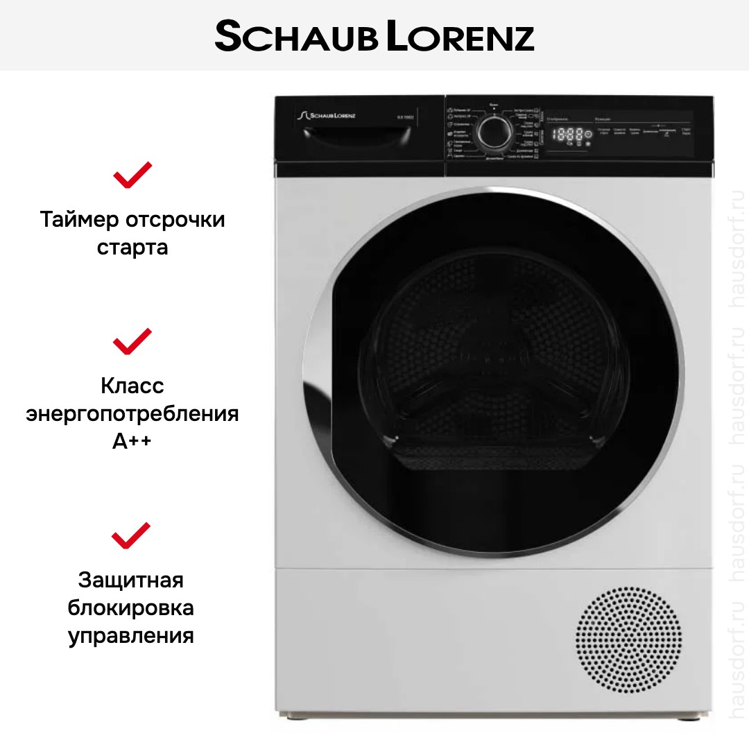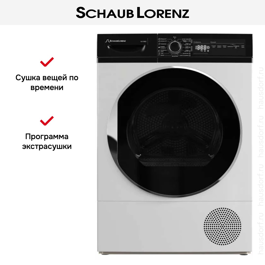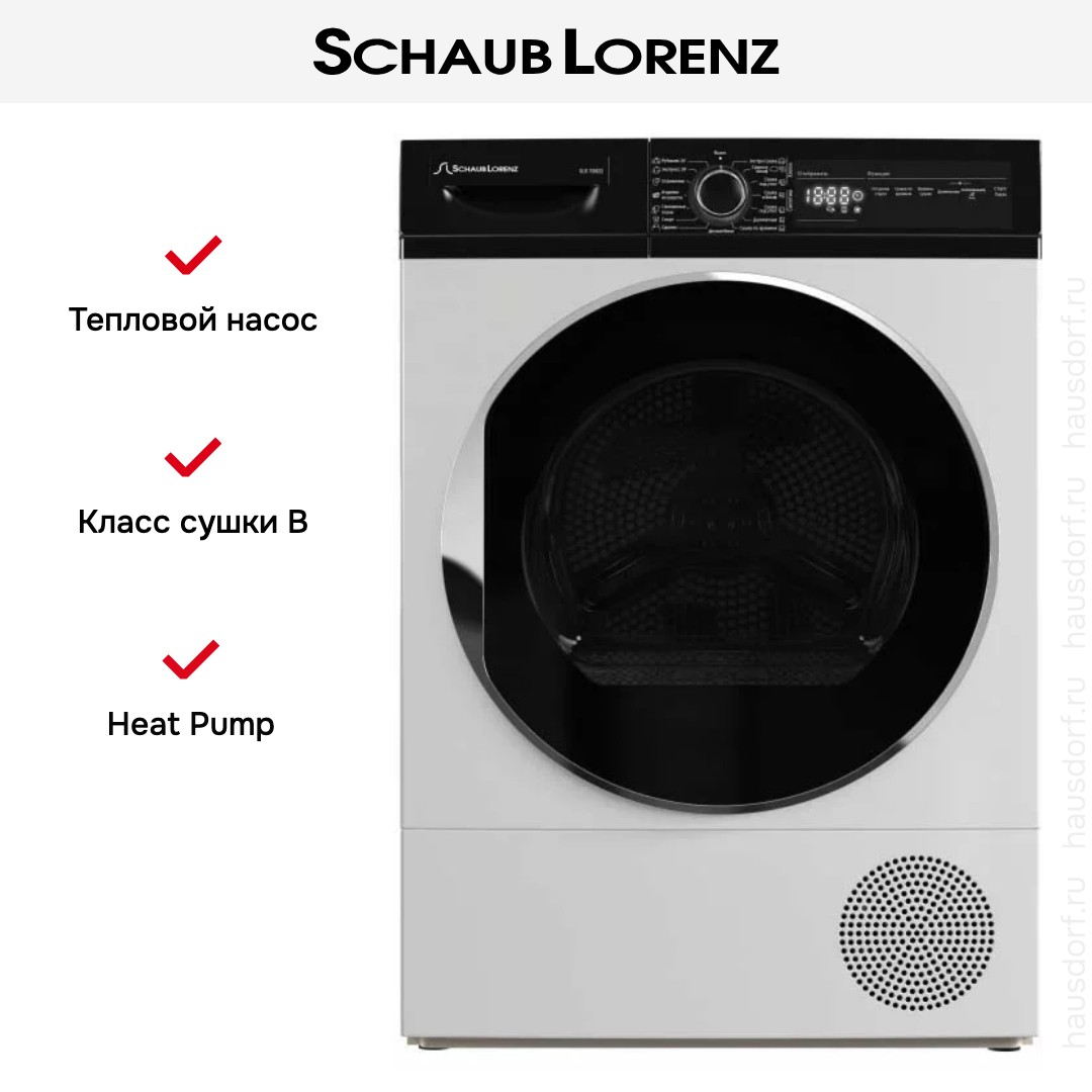 Сушильная машинка Schaub Lorenz — отличный вариант для домашней прачечной. Она работает по технологии теплового насоса — в отличие от конденсационной версии на очередном цикле прогревается не новая порция воздуха снаружи, а используется уже циркулирующий внутри поток. Такая система не только эффективна, но и более экономична.