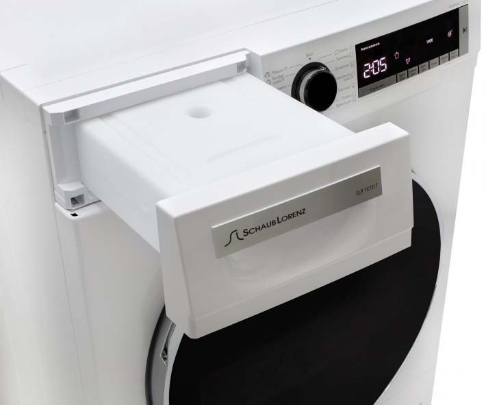 Панель управления в современных сушильных машинах находится в верхней части корпуса. Элементы управления — дисплей, поворотный переключатель, кнопки, индикаторы, — располагаются таким образом, чтобы пользователь мог легко ориентироваться в выборе параметров работы. В большинстве моделей панель управления располагается строго вертикально. Это не слишком удобно для пользователей высокого роста или для тех, кто имеет проблемы со зрением: им приходится наклоняться, например, чтобы выбрать ту или иную программу. В связи с этим некоторые производители начали переносить панель управления на крышку машины: так, фирма Schulthess предлагает две модификации одной и той же модели — с вертикальной и горизонтальной панелью управления.