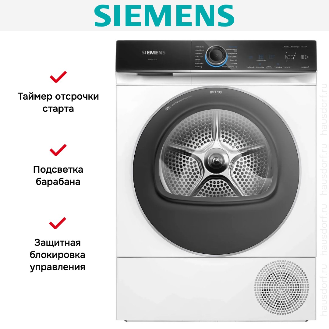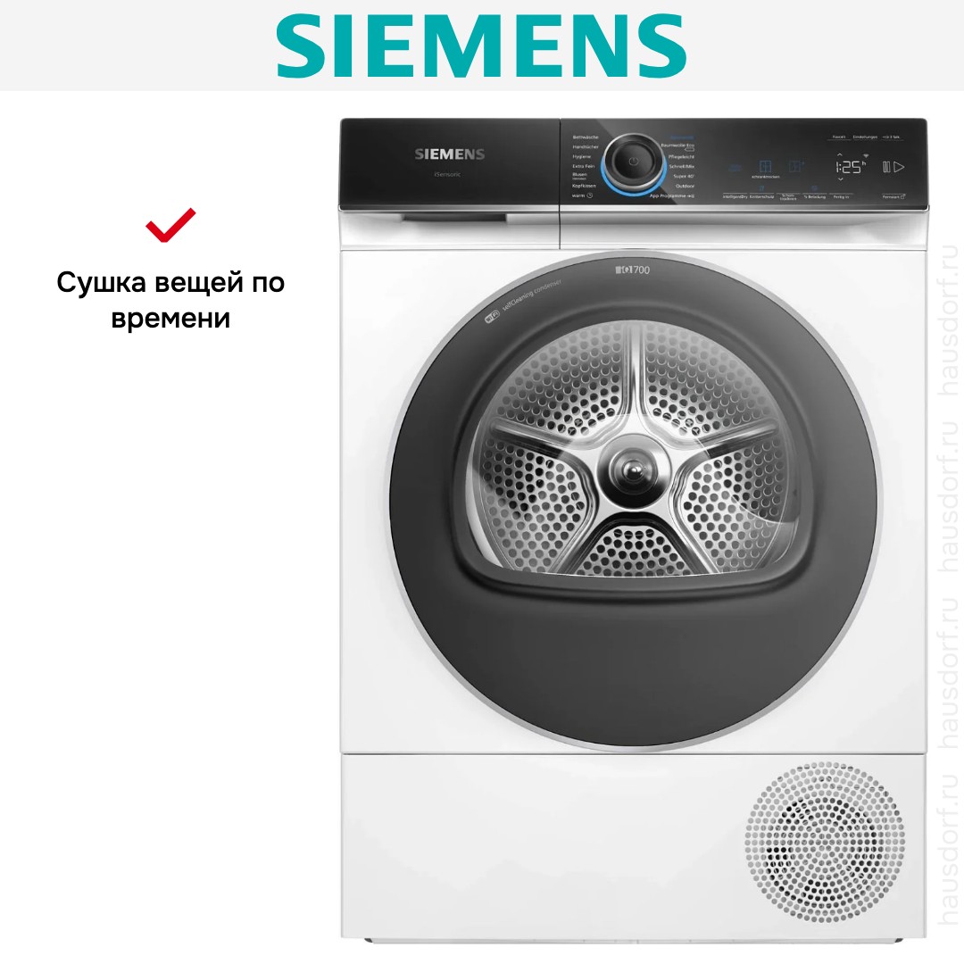 Сушильная машина Siemens предназначена для домашнего использования, поэтому имеет стандартные габариты и большое разнообразие программ. Так как она устанавливается отдельно, нужно заранее найти достаточно места в помещении.