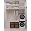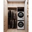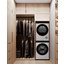 При приобретении сушильной машины следует обращать внимание на особенности установки. Наиболее популярны модели, которые устанавливаются в колонну со стиральными машинами — такие образом экономится место в кухне или в ванной. Сушилка, как более легкая, всегда размещается сверху. Кроме того, она должна иметь несколько меньшие габариты, чем стиральная — это гарантирует устойчивость всей конструкции, особенно во время отжима. Крепеж для установки обычно входит в комплект поставки. Такие модели могут устанавливаться и бок-о-бок со стиральными (тип Side-by-Side). Машины также соединяются вместе при помощи специального крепежа. Они могут дополняться полками или выдвижными ящиками для белья. Недостатком такой установки может считаться ограниченный выбор места, поскольку рядом должны находиться все коммуникации, включая канализацию, водопровод и электросеть.