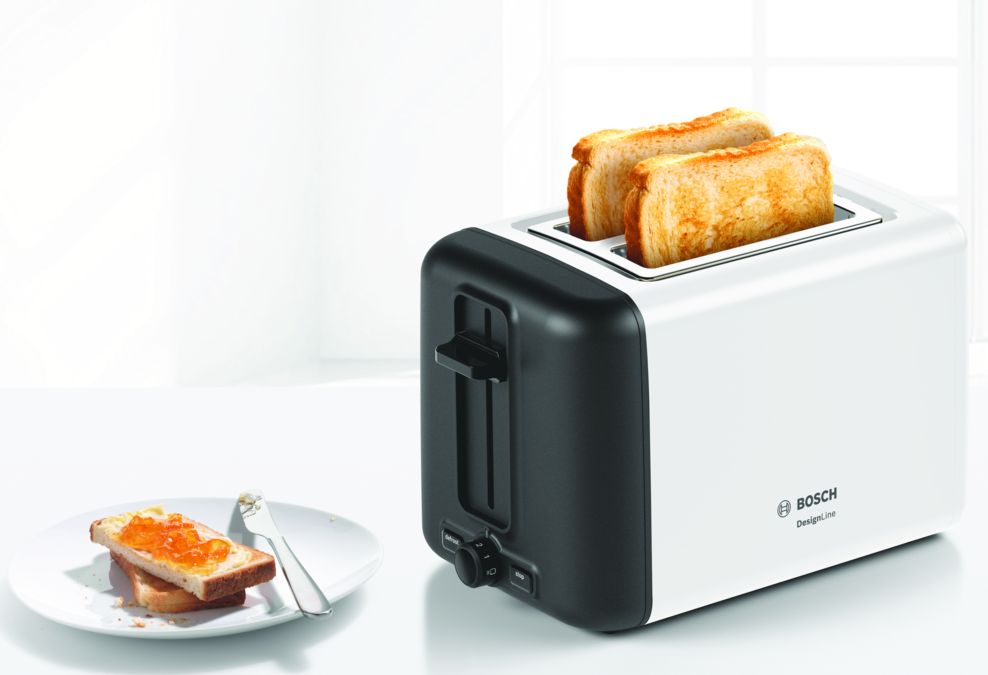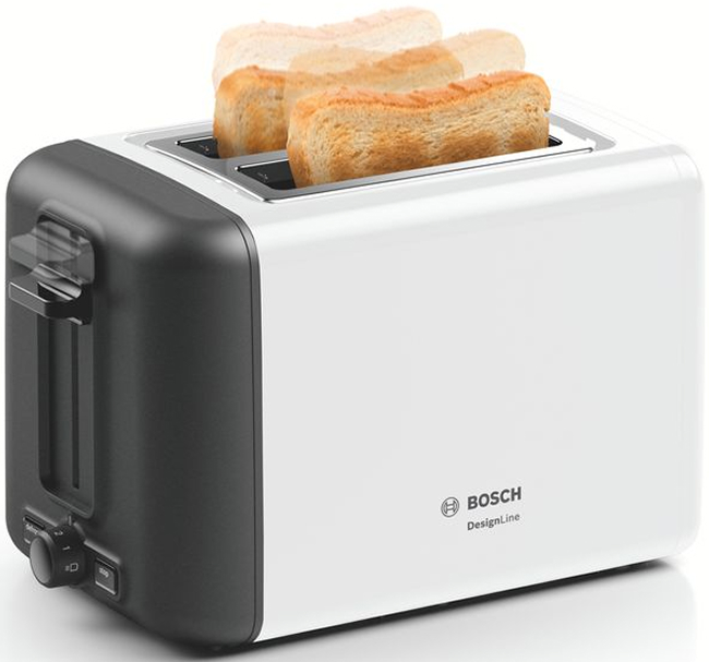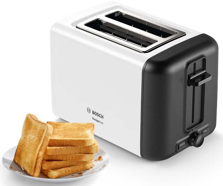 Тостер Bosch TAT3P421 — стильный и практичный стационарный прибор, созданный для ежедневного использования и способный стать центром утреннего ритуала. Его компактные габариты — 19,5 см в высоту, 30 см в ширину и 17 см в глубину — позволяют разместить устройство даже на небольшой кухонной поверхности, не нарушая гармонии интерьера. Белоснежный оттенок корпуса в сочетании с элементами из нержавеющей стали придаёт технике современный и аккуратный облик, подчёркивая эстетику минимализма.