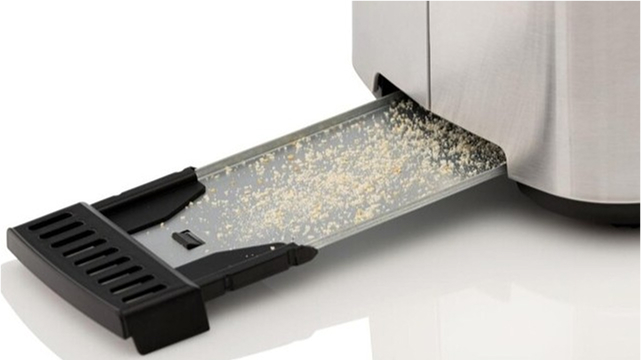 Поддон для крошек — удобная и практичная принадлежность большинства современных тостеров, которая предназначается для того, чтобы крошки не попадали на столешницу и не застревали в отверстиях для размещения ломтиков. Он изготавливается из нержавеющей стали, устойчивой к высоким температурам.