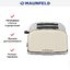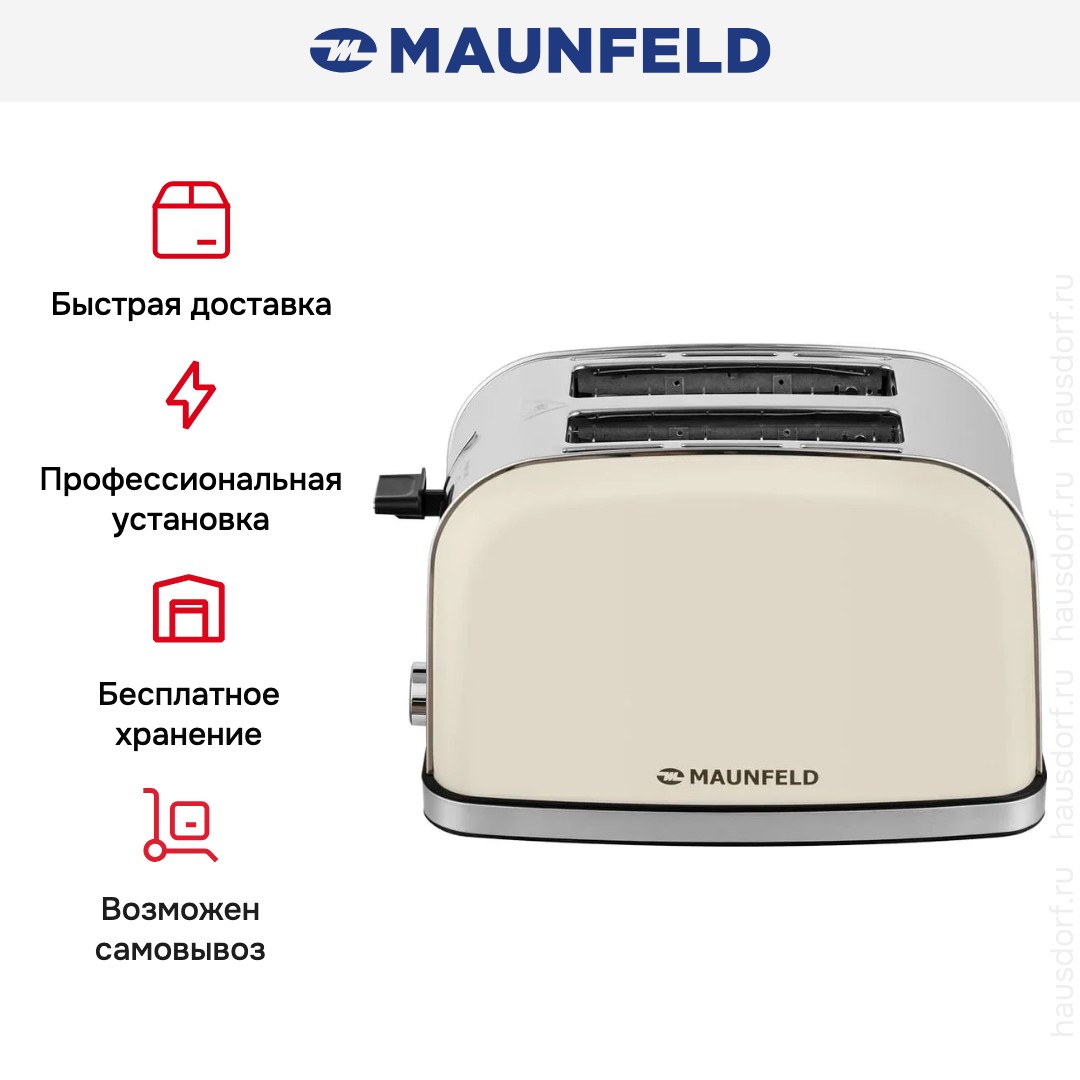 Стильный тостер Maunfeld имеет компактный корпус на устойчивых ножках, благодаря которым не пошатывается, даже если хлеб выпрыгивает вверх в конце приготовления. Основной материал, из которого изготовлен прибор, — нержавеющая сталь. Его главный оттенок — бежевый. Простое и понятное механическое управление позволяет быстро разобраться во всех функциях. Простое и понятное электронное управление позволяет быстро разобраться во всех функциях. На корпусе расположены кнопочные+поворотные переключатели для изменения настроек. Благодаря небольшому дисплею еще удобнее следить за процессом.