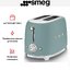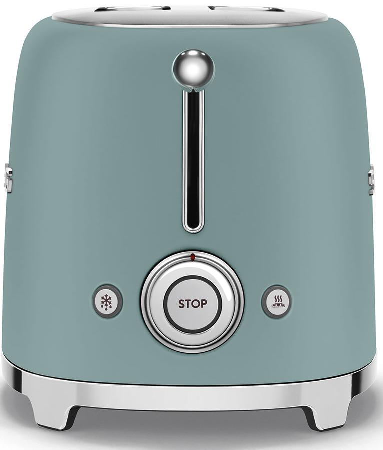 Стильный тостер Smeg имеет компактный корпус на устойчивых ножках, благодаря которым не пошатывается, даже если хлеб выпрыгивает вверх в конце приготовления. Основной материал, из которого изготовлен прибор, — нержавеющая сталь. Его главный оттенок — изумрудный. Простое и понятное механическое управление позволяет быстро разобраться во всех функциях. Простое и понятное электронное управление позволяет быстро разобраться во всех функциях. На корпусе расположены кнопочные переключатели для изменения настроек.