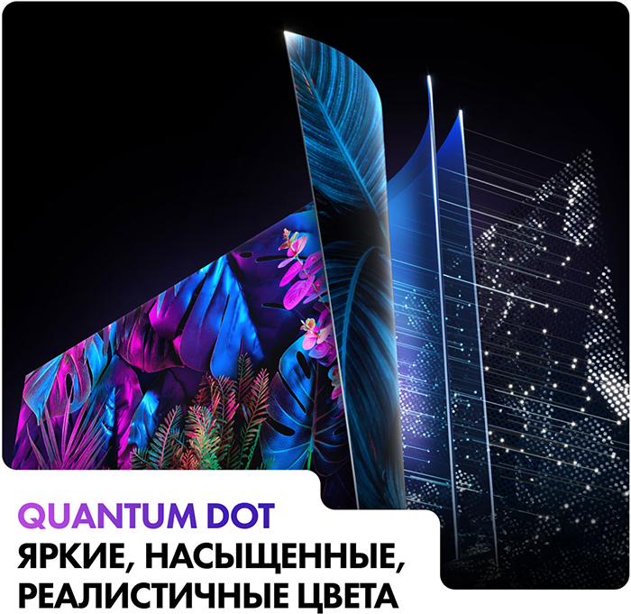 QLED — экран со светодиодами на основе квантовых точек. Фильтр между ЖК-монитором и панелью подсветки повышает яркость и насыщенность цвета.