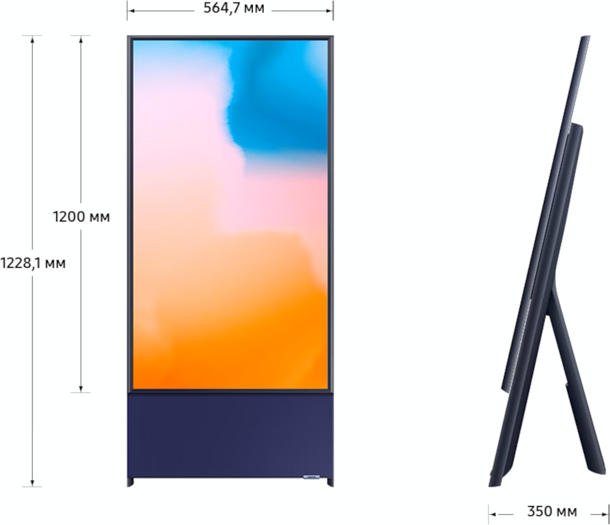 Телевизор Samsung QE43LS05BAUXRU предлагает сочетание элегантного дизайна и передовых технологий. Он выполнен в темно-синем цвете, что придаёт устройству стильный и современный вид. С диагональю 43 дюйма и габаритами 122.81×56.47×8.34 см, эта модель легко впишется в любой интерьер, будь то гостиная или спальня. Устройство можно разместить как на подставке, так и закрепить на стене, что позволяет оптимально использовать пространство в комнате.