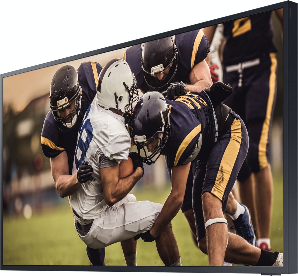 Это современное устройство с диагональю 65 дюймов, которое прекрасно впишется в любой интерьер благодаря своему черному цвету. Его размеры составляют 85.11 см в высоту, 146.63 см в ширину и 5.98 см в глубину, что позволяет разместить его как в помещении, так и на улице, учитывая защиту от пыли и влаги по стандарту IP55.