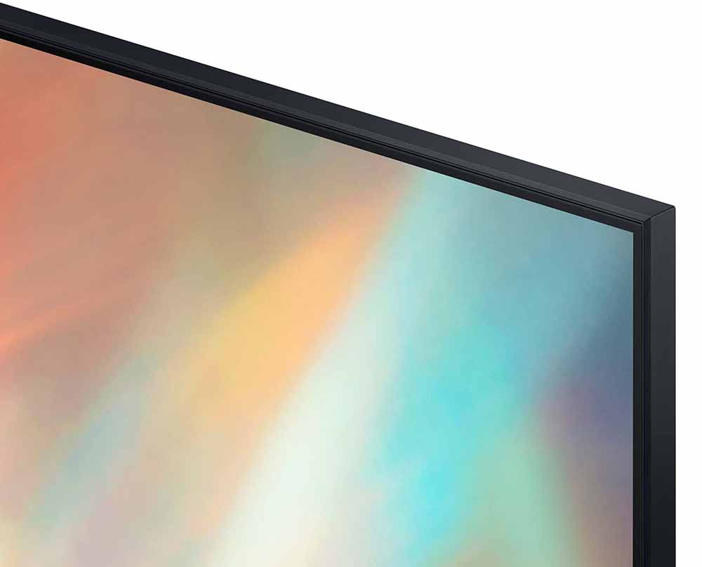 Экран типа QLED (матрица с квантовыми точками) с подсветкой Edge LED выдает четкую картинку формата 16:9 с разрешением 3840×2160. Поддержка HDR10+ (расширенный динамический диапазон) помогает видеть больше деталей в светлых и темных сценах, а частота 60 Гц обеспечивает плавность движения в фильмах и телепередачах. Масштабирование до 4K Ultra HD позволяет привычному контенту выглядеть более детально, цифровое шумоподавление сглаживает артефакты, яркость подстраивается под освещение в комнате.