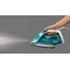 Выглядит как компактный бытовой прибор голубого цвета с лаконичными формами и сдержанными линиями. При габаритах 13.6×11.1×27 см и массе около 1 кг он займет немного места на гладильной доске и удобно хранится в шкафу. Корпус исполнен из пластика, который придает прибору легкость и упрощает маневрирование, а аккуратная керамическая подошва визуально выделяется гладкой, матовой поверхностью.