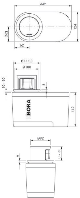 Встраиваемый вакууматор BORA QVacSS отличается компактной конструкцией и аккуратным лицевым оформлением из нержавеющей стали. Устройство имеет габариты 14.2×23.9×12.4 см, что позволяет расположить его в небольшой кухонной нише или столешнице без лишней визуальной нагрузки. Для встраивания подойдет столешница толщиной не менее 10 мм, а монтаж возможен как над рабочей поверхностью, так и вровень с ней; блок выдвигается вверх для доступа. Нержавеющая сталь на фронтальной панели не только эстетична, но и стойка к пятнам, царапинам и легко очищается от пищевых загрязнений.