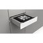 Чтобы открыть рабочую камеру, достаточно нажать на фронтальную панель — не нужны отдельные кнопки или ручки, благодаря чему прибор отлично вписывается в «бесшовный дизайн» наряду с другой встраиваемой техникой. Некоторые модели открываются на всю глубину, некоторые нет — и чтобы полностью открыть рабочую поверхность, нужно выдвинуть ее рукой.