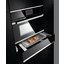 Чтобы открыть рабочую камеру, достаточно нажать на фронтальную панель — не нужны отдельные кнопки или ручки, благодаря чему прибор отлично вписывается в «бесшовный дизайн» наряду с другой встраиваемой техникой. Некоторые модели открываются на всю глубину, некоторые нет — и чтобы полностью открыть рабочую поверхность, нужно выдвинуть ее рукой.