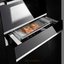 Чтобы открыть рабочую камеру, достаточно нажать на фронтальную панель — не нужны отдельные кнопки или ручки, благодаря чему прибор отлично вписывается в «бесшовный дизайн» наряду с другой встраиваемой техникой. Некоторые модели открываются на всю глубину, некоторые нет — и чтобы полностью открыть рабочую поверхность, нужно выдвинуть ее рукой.
