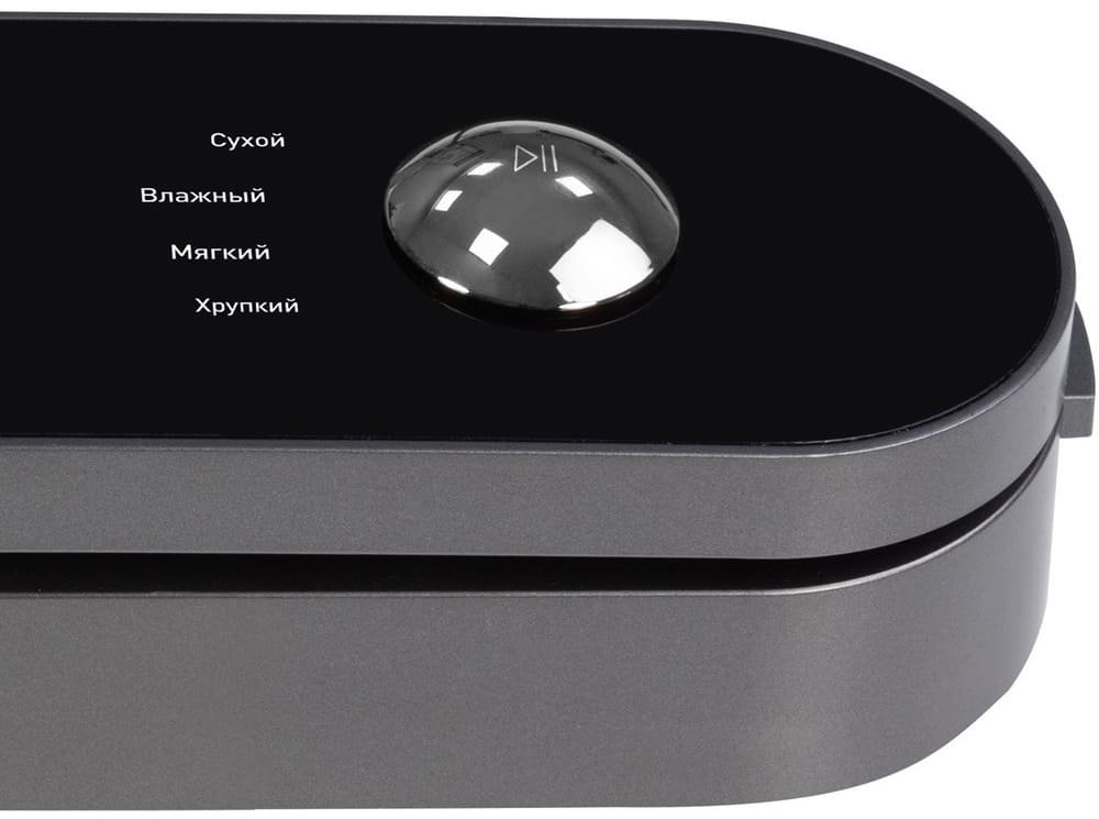 Цвет данной модели — черный — позволяет интегрировать ее практически в любой интерьер. Установите вакуумный упаковщик в одну нишу с духовкой или в колонну с другим прибором. Благодаря современному электронному управлению можно быстро выбрать необходимый режим и проверить, как продвигается цикл.