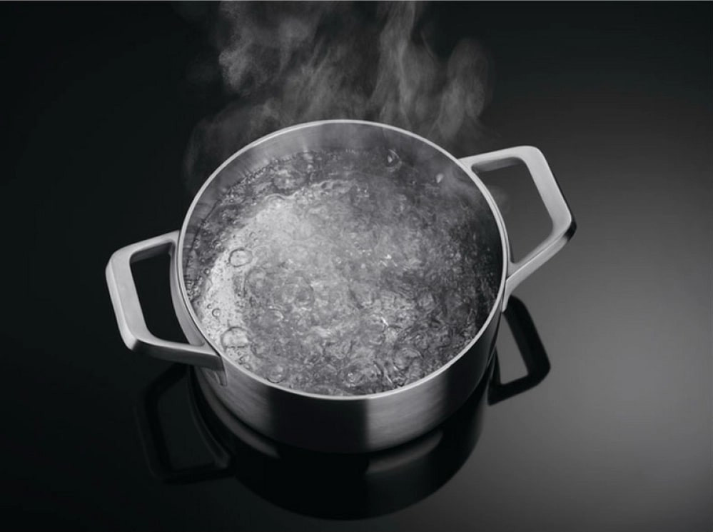Степень увеличения мощности зависит от изначальных параметров каждой конфорки. Эта функция не только позволяет быстро вскипятить воду: ее рекомендуется использовать для приготовления блюд, требующих быстрой интенсивной обжарки — например, в азиатской кухне или при использовании замороженных продуктов.