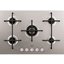 Выбор газовой варочной панели чаще всего обусловлен тем, что в частный дом или квартиру проведен именно газ в качестве обогрева. Работать с этой моделью довольно просто, так как мощность нагрева видна невооруженным взглядом — по силе огня в горелке. Количество конфорок в этой модели: 5.