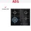 Варочная панель AEG HVB64420IB — четырех конфорочная газовая модель черного цвета, шириной 60 см из жаропрочного стекла с системой электроподжига в поворотной ручке.