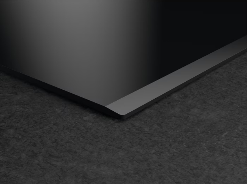 Хорошей альтернативой рамке является металлический профиль, который обычно устанавливается только спереди или сбоку. Он также не позволяет жидкости стекать на столешницу, но не «съедает» полезную площадь. Что касается варочных панелей без рамки, неизменной популярностью пользуются модели со скошенным краем. Такая обработка называется фацетной — внешняя сторона панели имеет огранку под углом 45 градусов. Такая панель очень легко чистится и эффектно выглядит, а современные методы огранки защищают края от сколов.