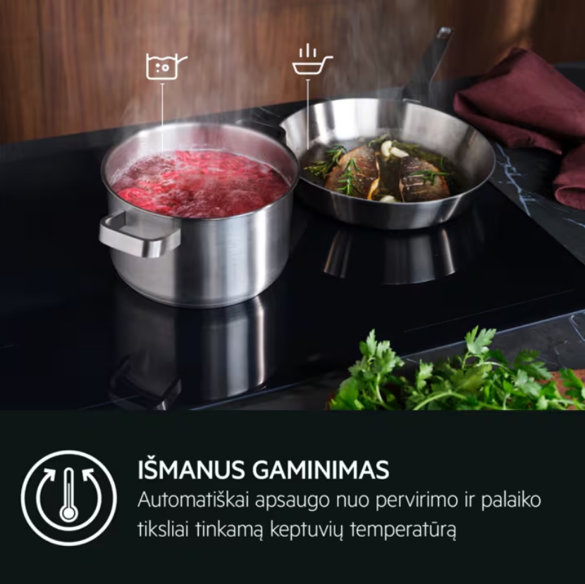 Благодаря функции распознавания посуды нагрев варочной зоны происходит только в том случае, если на варочной панели стоит посуда. Система контролирует каждую варочную зону. Если посуда уже находится на одной из конфорок, то активация зоны происходит одновременно с включением панели конфорок.
