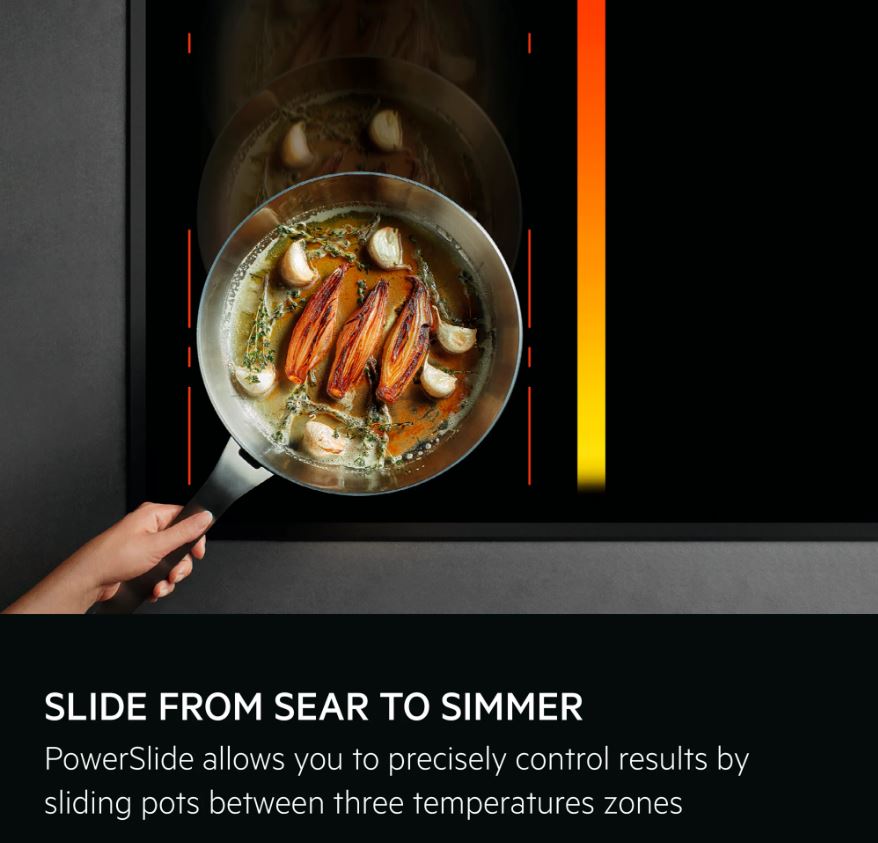 При использовании функции PowerTransfer приготовление пищи становится еще более удобным, так как при перестановке посуды на соседнее место не нужно выставлять для него те же настройки, что и для предыдущего: настройки будут перемещаться по поверхности вслед за кастрюлей или сковородкой. Индукторы, при помощи которых происходит нагревание, на прежнем месте самостоятельно прекратят работу, а на новом — включатся, что позволит уменьшить время, потраченное на приготовление пищи, и сэкономить электроэнергию. Функция работает также, если конфорки не объединены, а посуда просто передвинута с одной на другую.