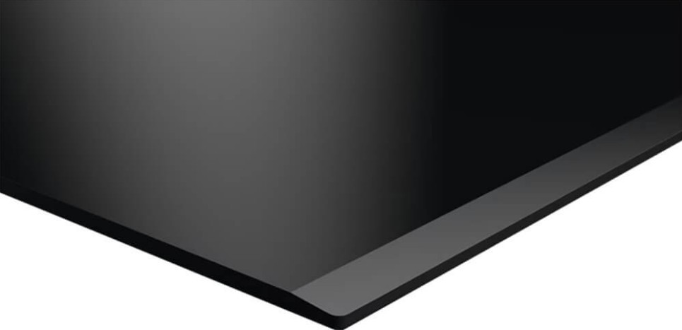 Хорошей альтернативой рамке является металлический профиль, который обычно устанавливается только спереди или сбоку. Он также не позволяет жидкости стекать на столешницу, но не «съедает» полезную площадь. Что касается варочных панелей без рамки, неизменной популярностью пользуются модели со скошенным краем. Такая обработка называется фацетной — внешняя сторона панели имеет огранку под углом 45 градусов. Такая панель очень легко чистится и эффектно выглядит, а современные методы огранки защищают края от сколов.