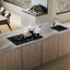 Двухконфорочные панели шириной около 30 см часто можно комбинировать с другими в дизайне «Домино». Такие панели нередко выбирают покупатели, которые пользуются для приготовления пищи другой техникой — мультиварками, духовками, СВЧ-печами. Конфорки при этом могут располагаться как в два ряда, так и в один, а форма панели может быть как привычной прямоугольной, так и овальной или в виде капли.