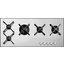 Посуда устойчиво размещается на раздельных чугунных решетках. Материал изготовления варочной поверхности — очень толстая нержавеющая сталь AISI 304. Для включения горелок без зажигалок или спичек предусмотрен электроподжиг. На каждой горелке установлена термопара для блокировки подачи газа при угасании пламени.